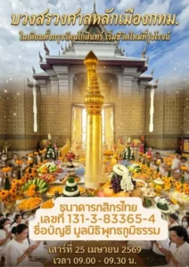 ขอเชิญทุกท่านร่วมบุญในเดือนที่ทรงพลังที่สุดในการ "ตั้งหลัก" ให้ชีวิต มารวมใจกัน ณ ศาลหลักเมือง กรุงเทพมหานคร เสริมฐานรากชีวิตให้มั่นคง!